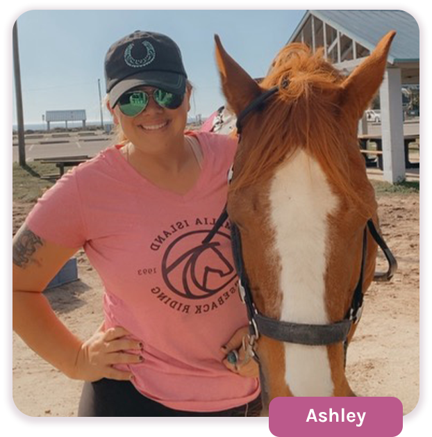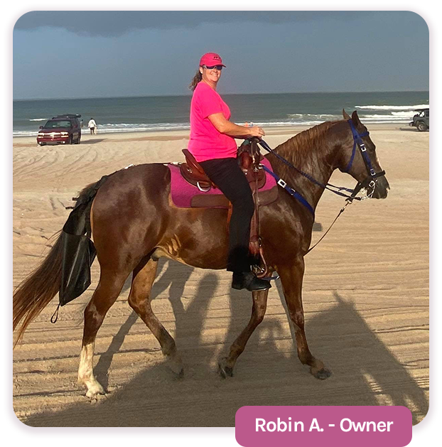 Maranda has been riding since she was 10 years old, and there’s nothing she enjoys more. She loves sharing the beauty of the beach with all of her riders.