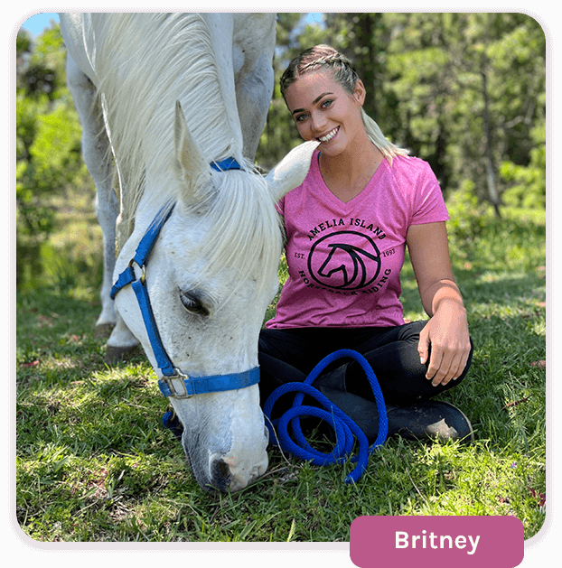 Britney has been riding since she was 7 years old! She brings over 15 years of experience to Amelia Island Horseback Riding. Previously she has worked at kids day camps as well as guided trail rides in Davie, Florida. She enjoys the serenity of Amelia Island and how happy it makes other people to check this off their bucket list. Britney enjoys riding with her horse Ozzy.