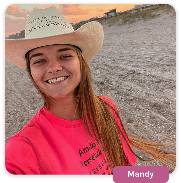 Mikayla has been riding for 13 years. She used to travel with team roping and sorting. Previously, she used work at a smaller cattle ranch while working cows. Her favorite part about horseback riding on Amelia Island is how calm and peaceful it can be. Mikayla enjoys riding with her horse Zues.